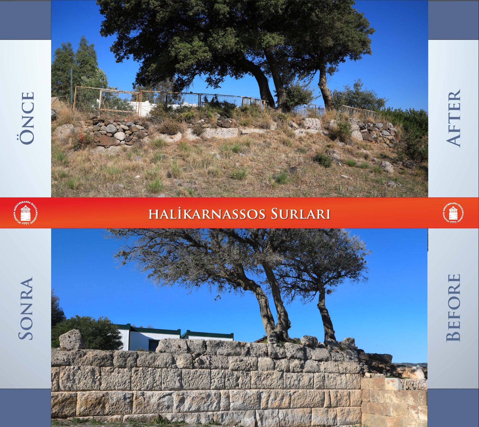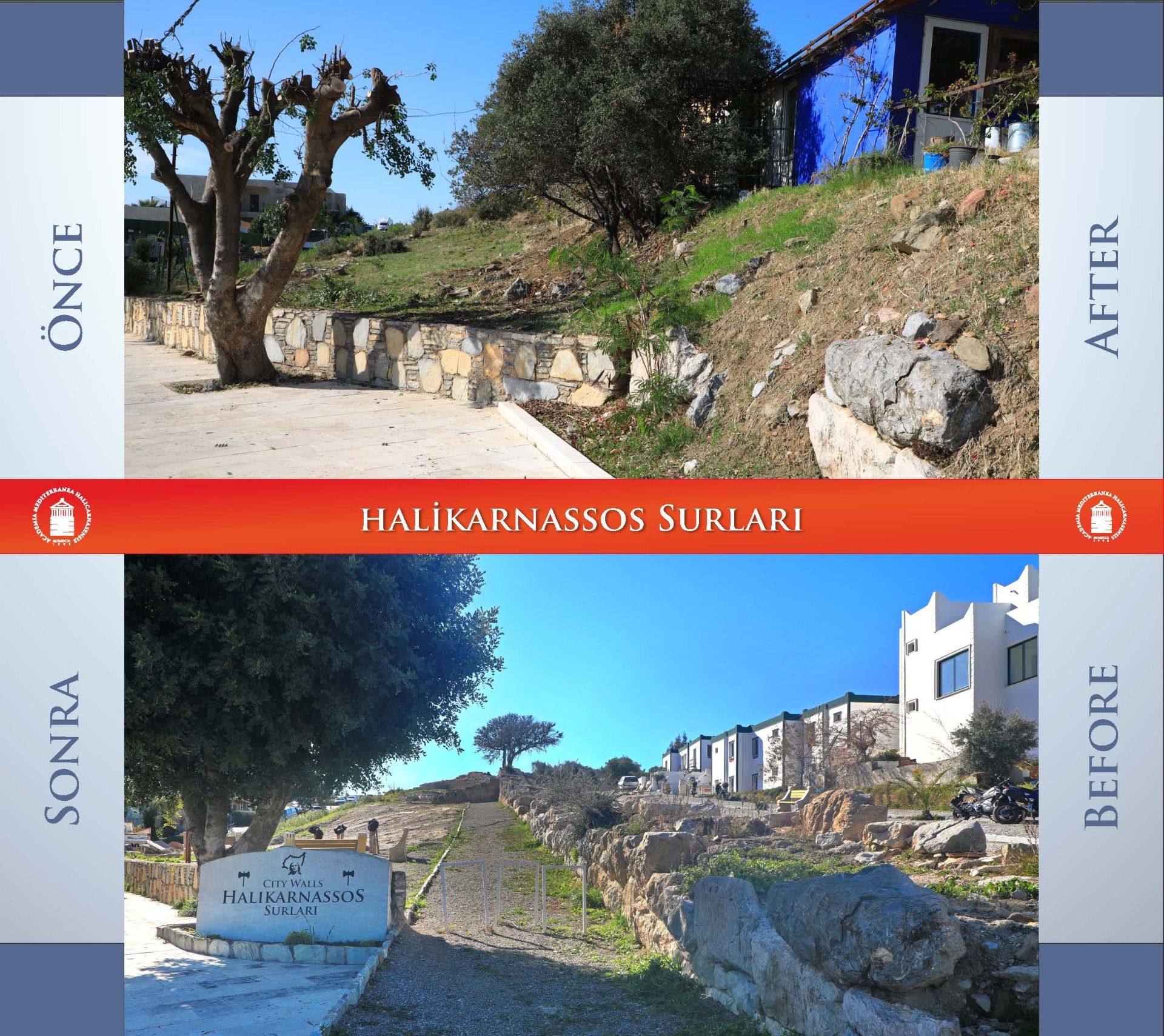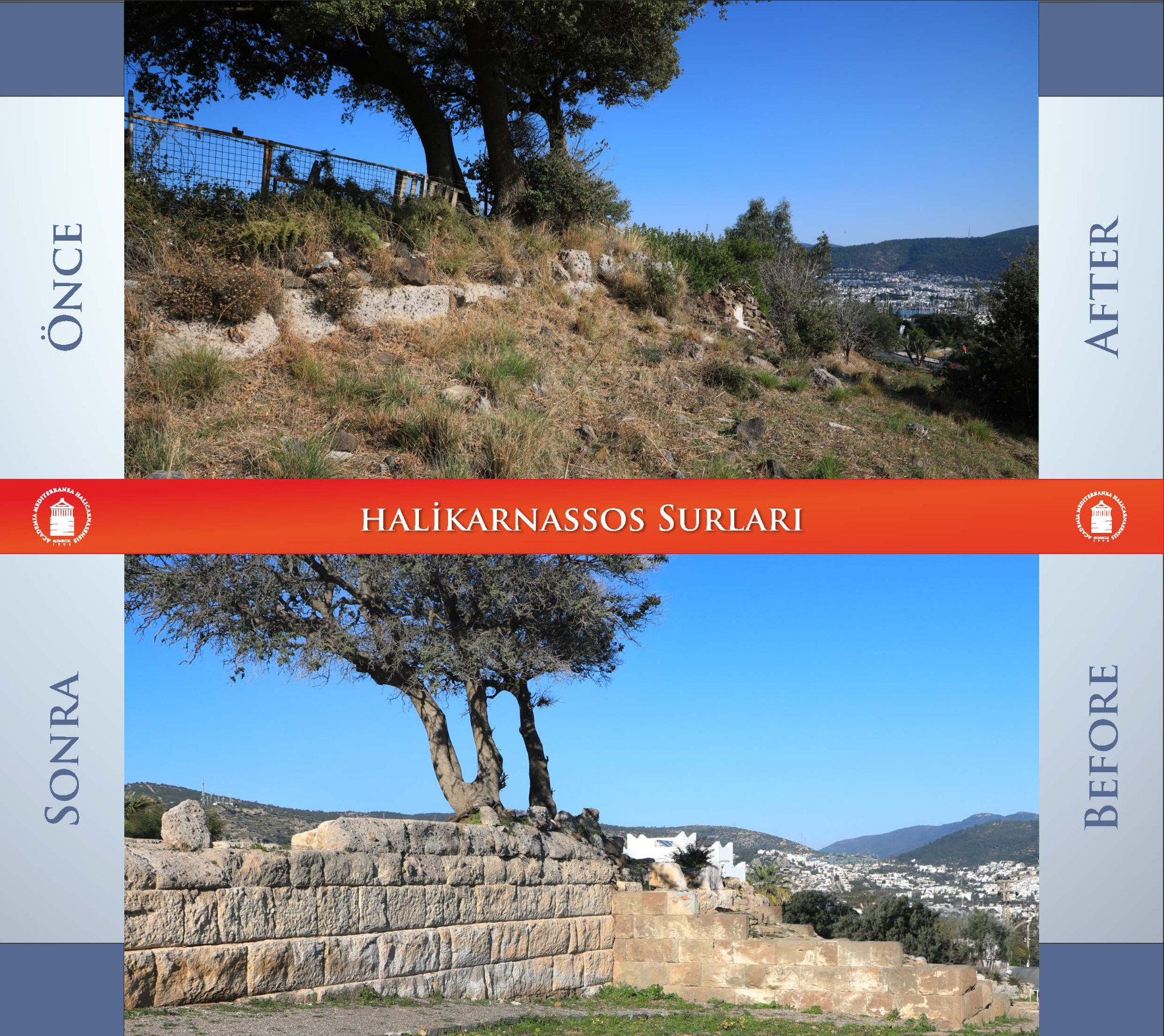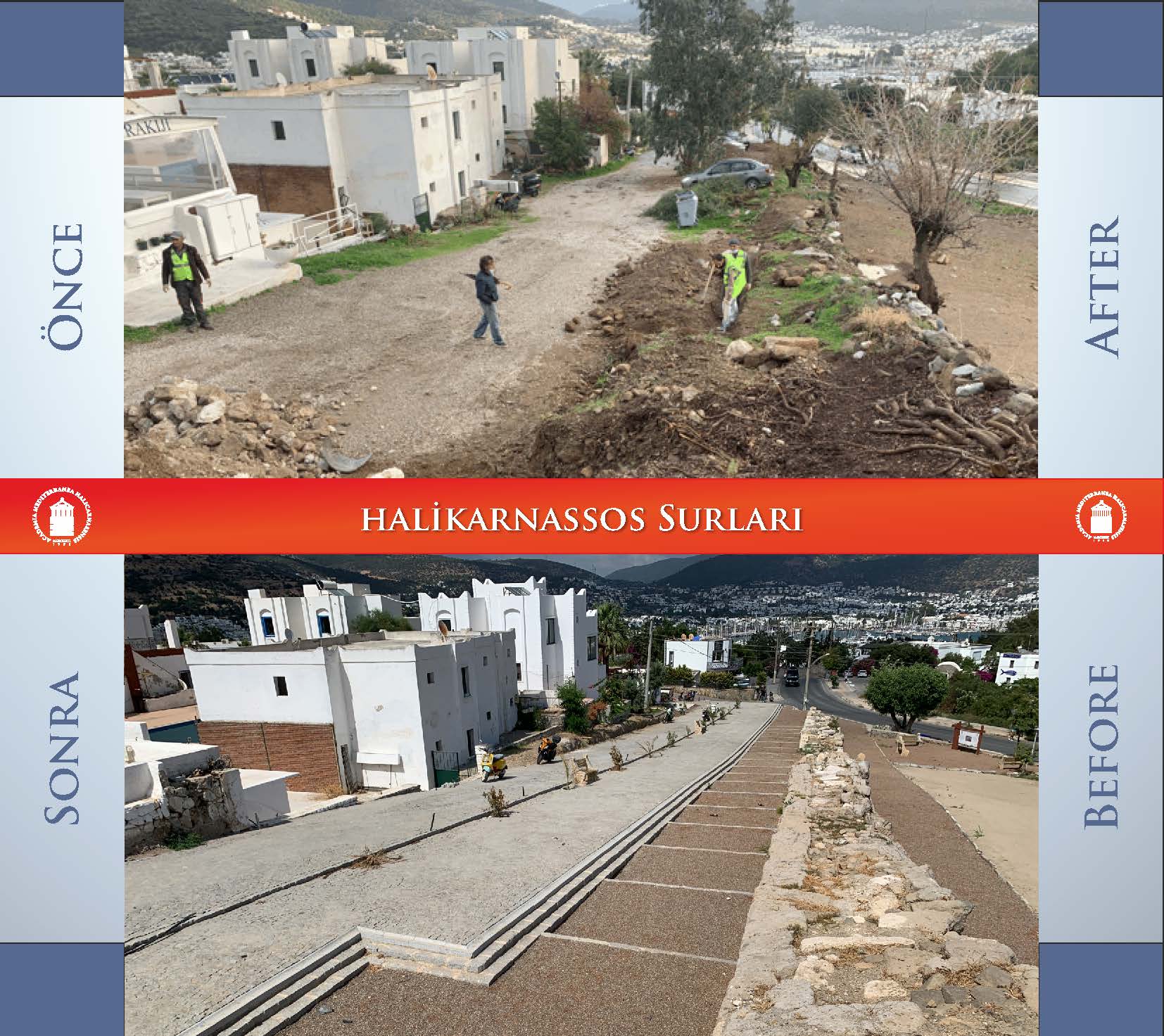 After Halicarnassus was made the capital, the city was reconstructed with the City Walls, Stadium, Amphitheater, Mausoleum and many other monumental works. The fortification walls, which are approximately 6.5 km long, surround Bodrum city center today. Although approximately 5 km of the fortification walls have been largely destroyed by the protection measures, it still maintains its existence. The city walls are seen as a monumental work not only with their wall structure, but also with their outposts, watchtowers and Myndos gate.