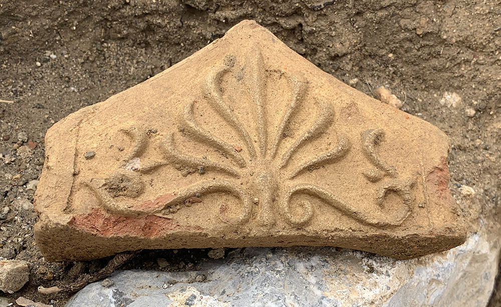 29.01.2021 Tarihinde 2. Kulenin iç avlusunda bulunan çatı süsünün konservasyon işlemi olarak yüzey temizliği yapılmış,